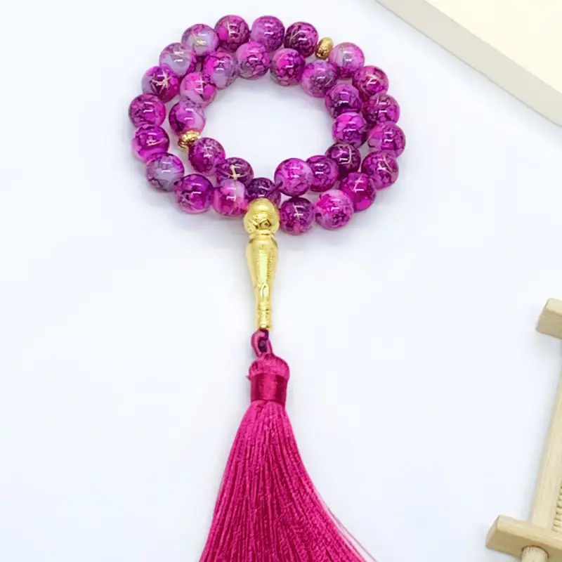 33 قطعة من تسبيح الزجاج الأنيق مع شراشيب، خرز صلاة مسلم متعدد الألوان لهدية رمضان والعيد، ملمس ناعم حريري، غير مغناطيسي، غير مشحون – صندوق هدايا مرفق