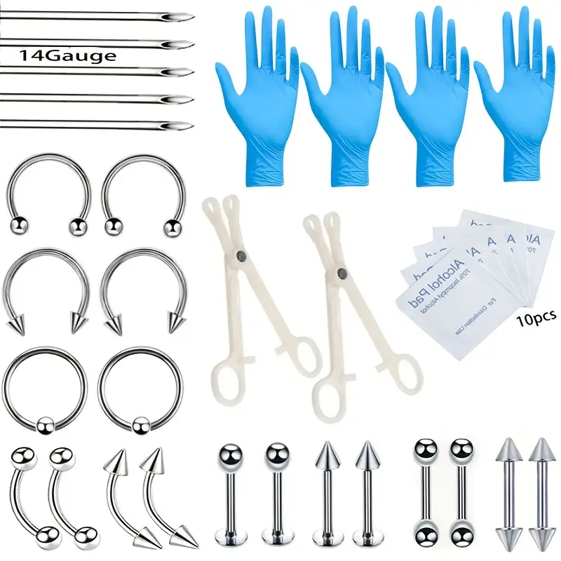 39 قطعة من مجموعة أدوات مجوهرات الثقب من الفولاذ المقاوم للصدأ، نمط حديث، مجموعة متعددة الأجزاء مع مقاطع الحاجب، الشفاه، اللسان، قضيب، قضيب، خواتم الأنف، هدية لعيد الفصح ورامadan