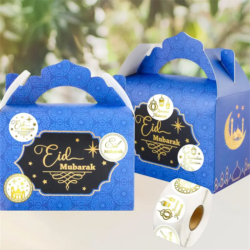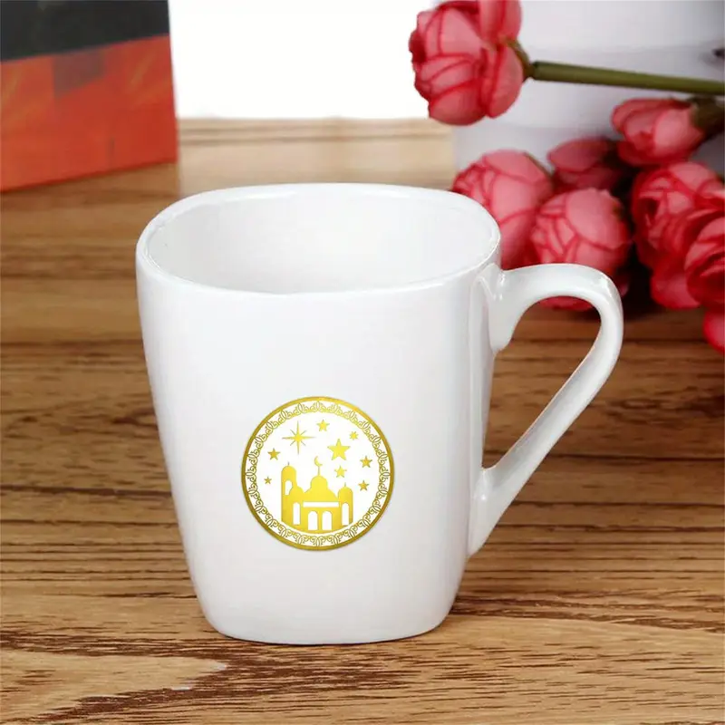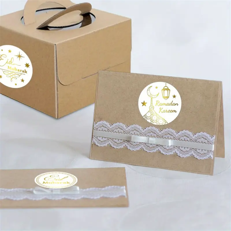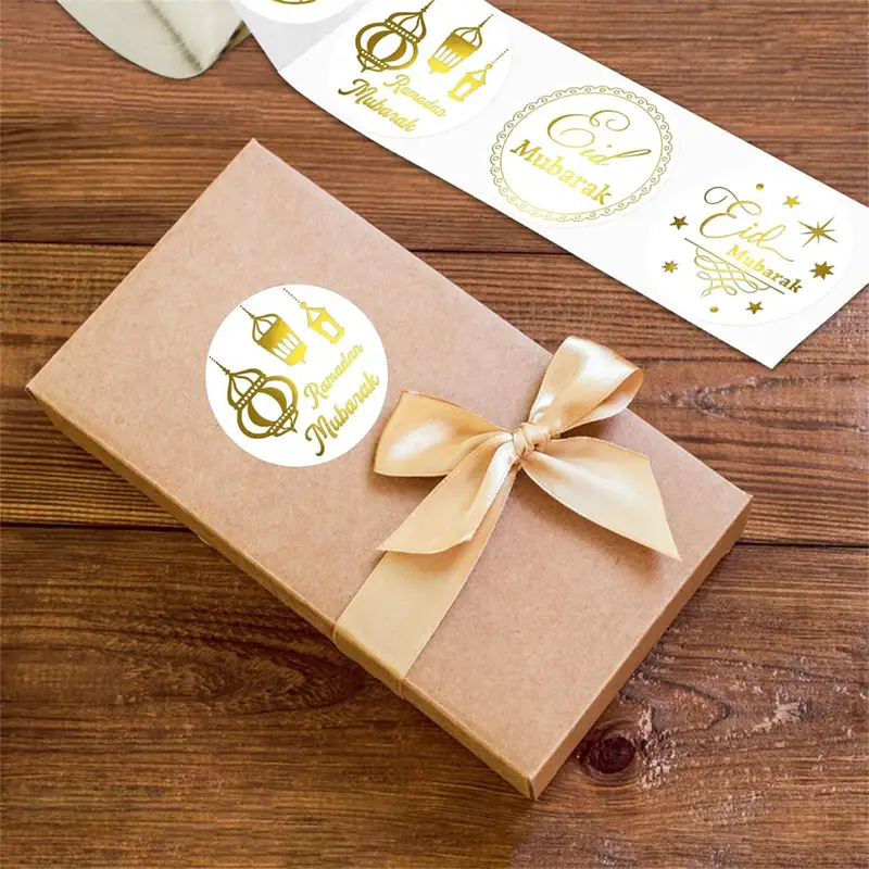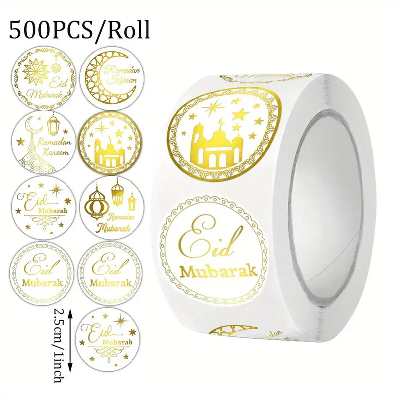 500 قطعة من ملصقات رمضان بظهر ذهبي – دائرية، لامعة لهدايا الحفلات والختم
