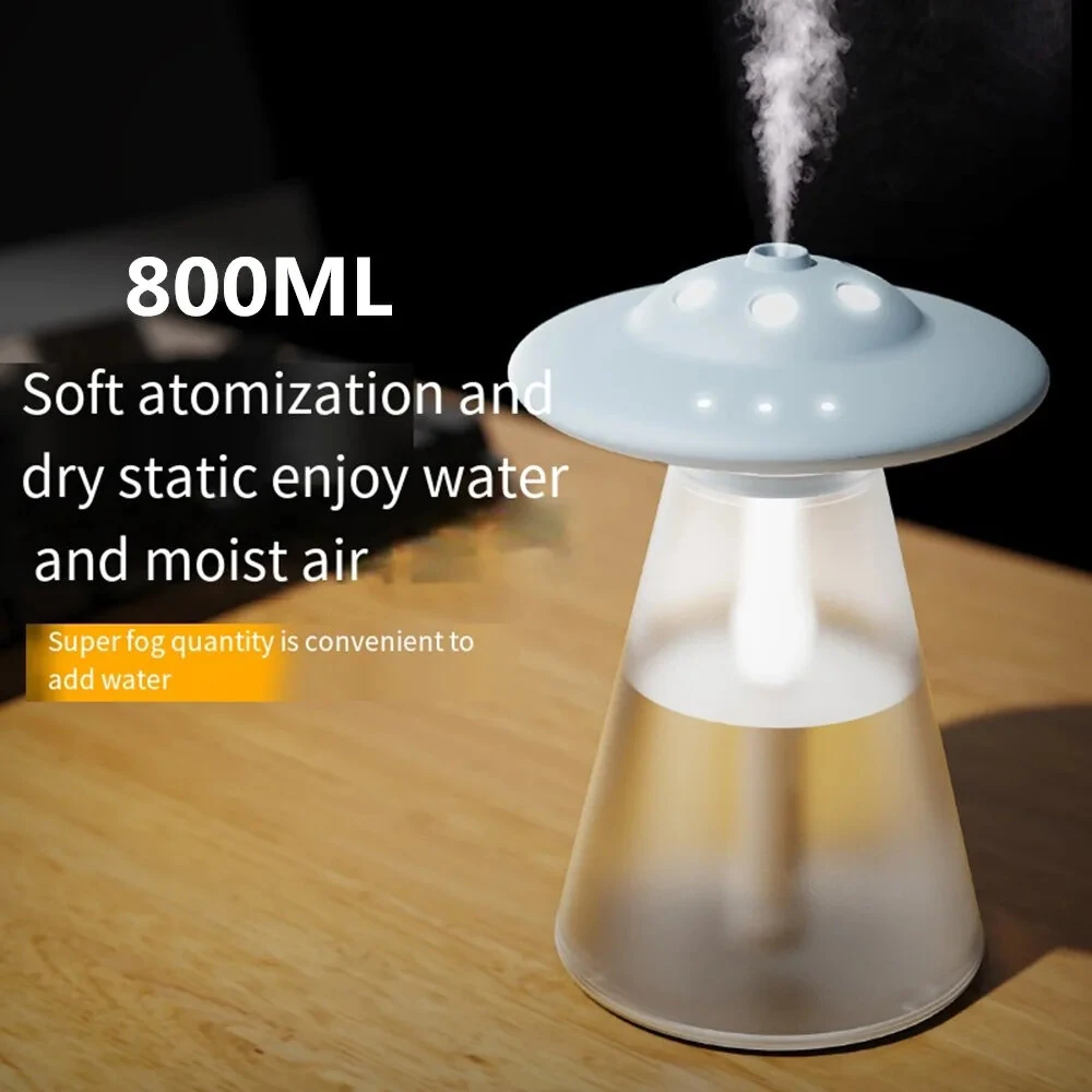 800 مل جهاز ترطيب الهواء الذكي USB الشحن يو إف أو جهاز ترطيب محمول باليد موزع زيت أساسي قابل لإعادة الشحن رذاذ عطر رائحة للسيارة والمنزل والنباتات – أبيض
