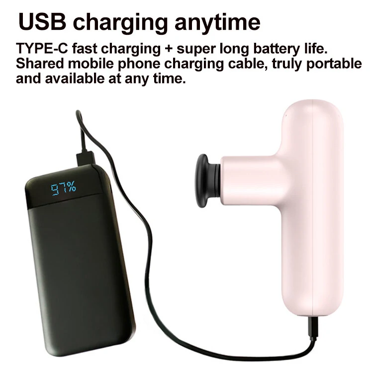 SK6 بندقية تدليك العضلات الصغيرة القوية ذات 4 سرعات قابلة للتعديل من النوع C القابلة لإعادة الشحن والمحمولة مع رأسي تدليك – أسود